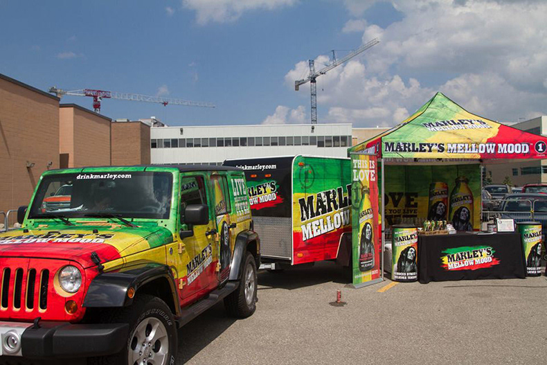 Environmental graphics below: Trade Show Booths and Sampling Events.